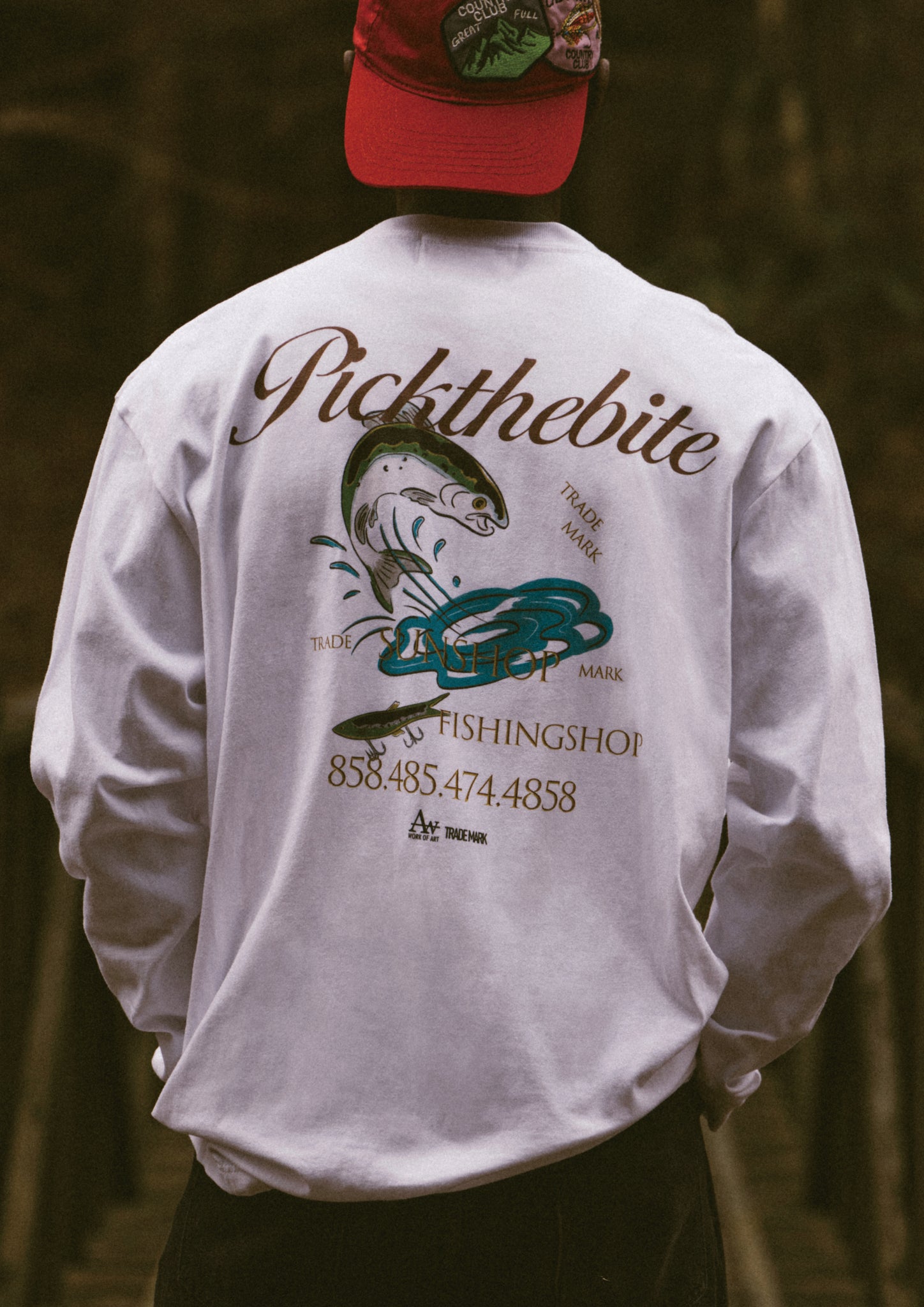 今季のテーマであるフィッシング&ハンティングを表現した長袖Tシャツ。